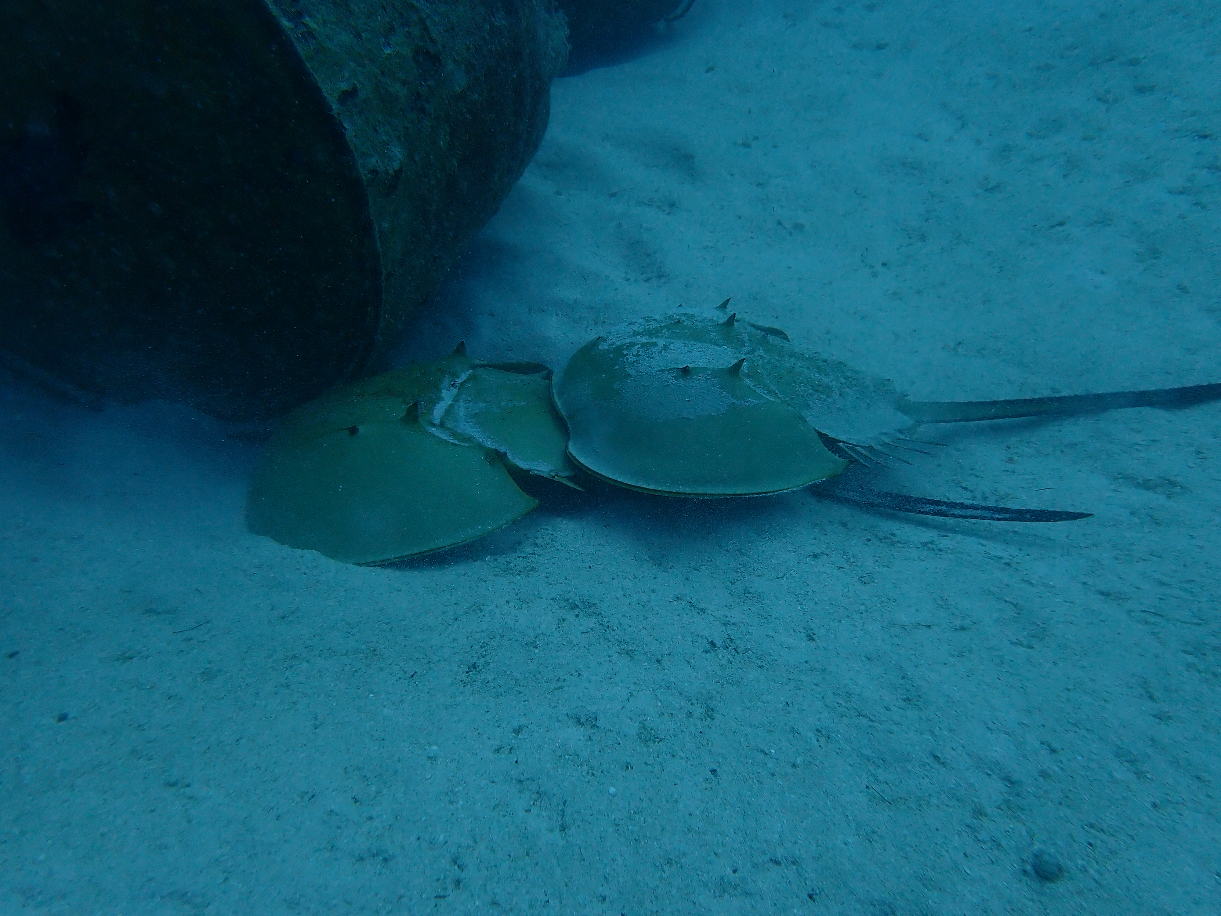知ってる人も多いかも知れませんカブトガニです!交尾中を撮影した貴重な写真です.生きる化石とも呼ばれるこの生物は,血液が薬として利用されているなど意外な一面があるのです!